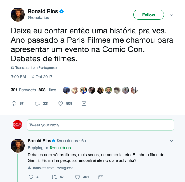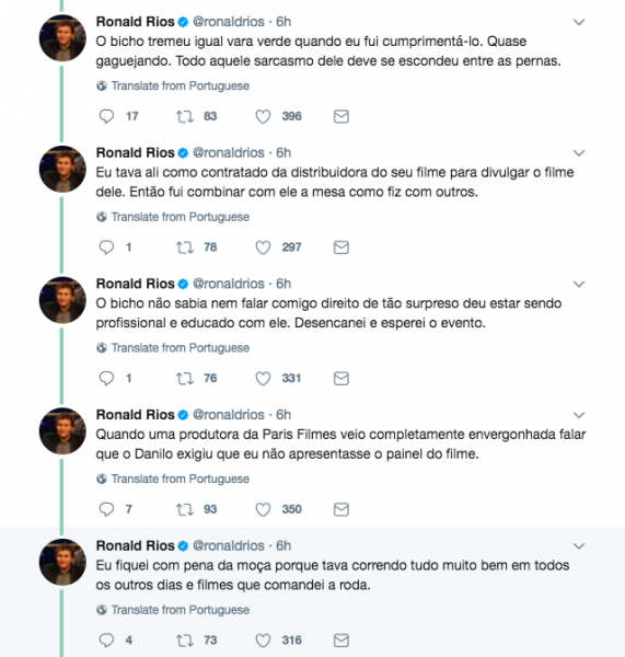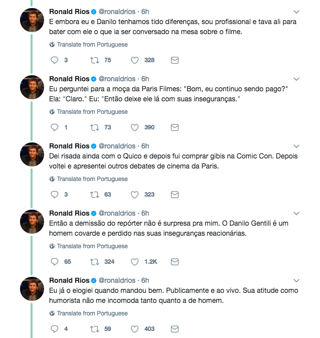 O humorista Ronald Rios contou uma passagem ilustrativa da vida, obra e caráter de Danilo Gentili: