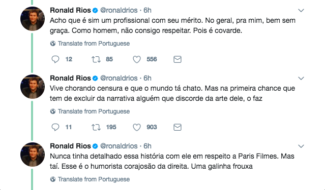 “Gentili é uma galinha frouxa”, diz humorista Ronald Rios