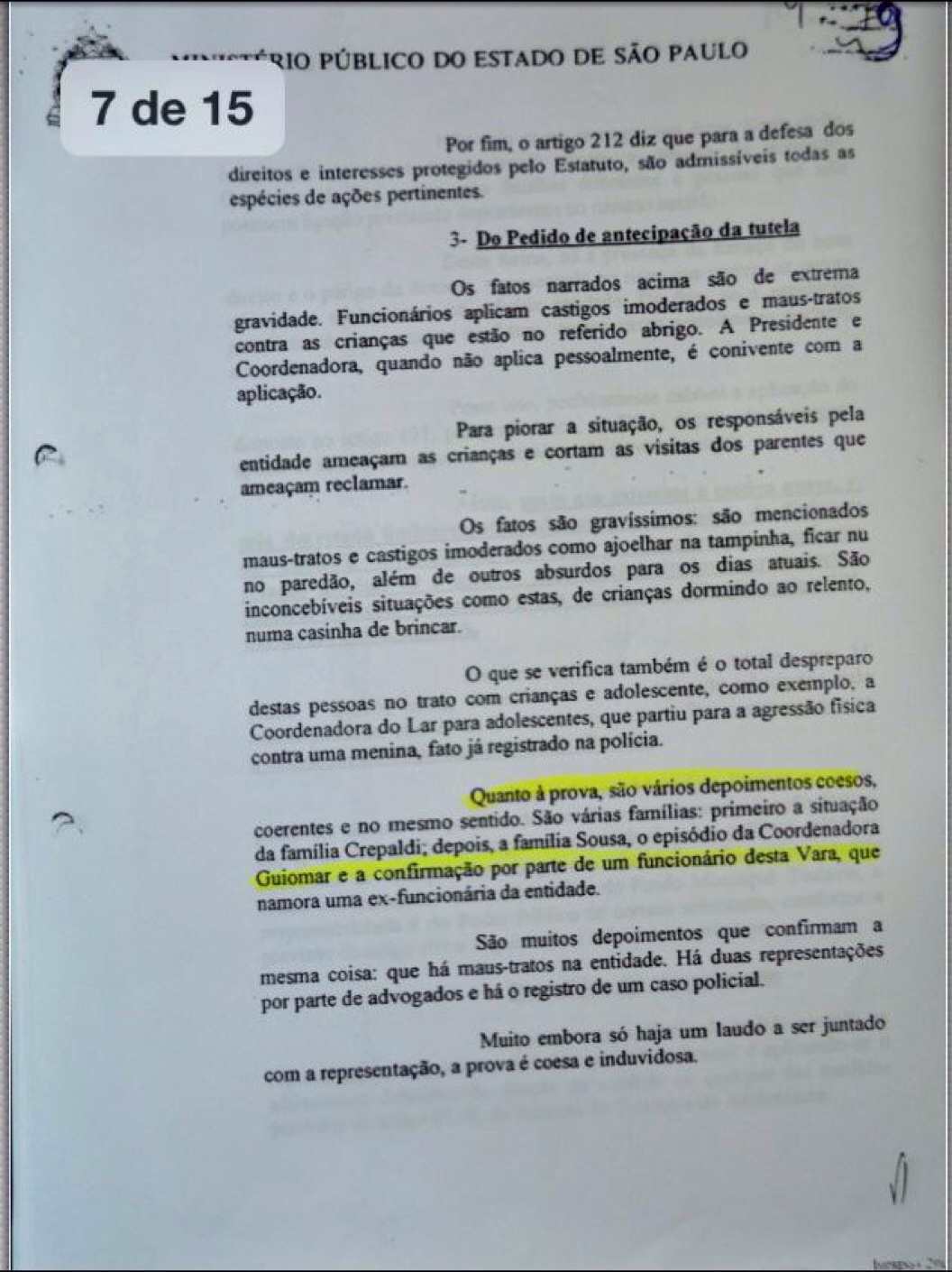 O documento afirma que eram “muitos” os depoimentos de abusos.