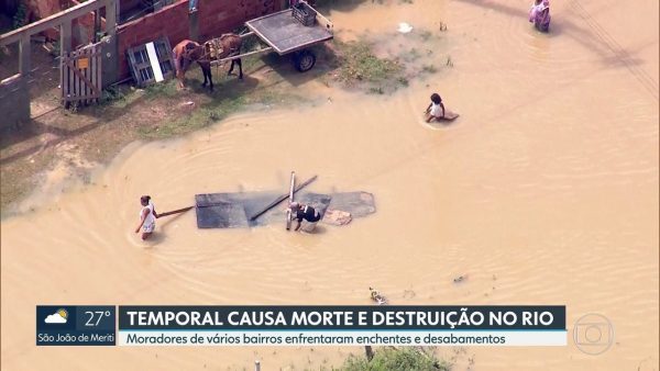 No “JR”, a repórter Carolina Novaes disse: “O prefeito Marcelo Crivella, em viagem à Suécia, acompanhou o trabalho da Defesa Civil nas ruas da cidade após o temporal. Por nota, ele lamentou as mortes provocadas pela chuva e destacou que todos os órgãos estão trabalhando para prestar toda assistência à população”.