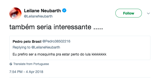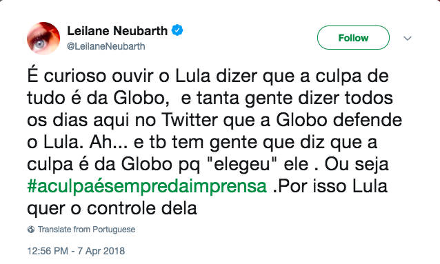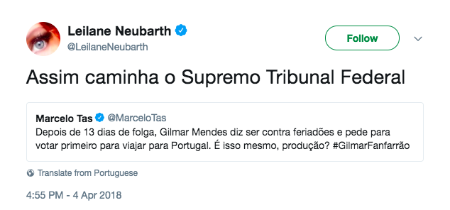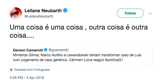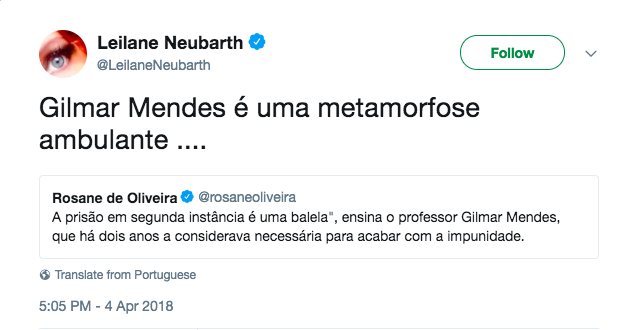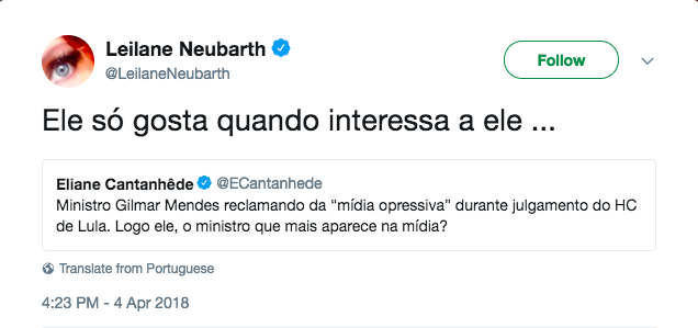 Pau que bate em Chico não bate em, por exemplo, Leilane Neubarth, que exerce no Twitter o legítimo direito de bater em Lula, Gilmar Mendes e outros porque aí não é inapropriado, segundo a casa.