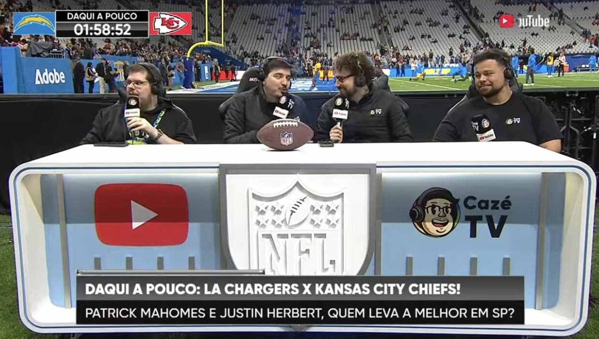 Na última sexta-feira (05), a GE TV, novo canal de streaming do Grupo Globo, estreou com uma transmissão da NFL que ocorreu na Neo Química Arena, em São Paulo. O jogo mostrou os Los Angeles Chargers vencendo o Kansas City Chiefs e marcou o primeiro confronto direto do canal com a CazéTV.