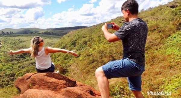 Manifestou alegria: “OLHA QUE LEGAL! Enquanto eu batia uma foto da Ju, o Mateus bateu uma foto minha batendo a foto da Ju! Kkk tipo… a “foto dentro da foto”… Ele só me mostrou depois e eu achei muito legal! A minha foto foi feita com o celular e a dele com câmera mesmo…”