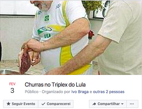 Traga sua cervejinha gelada, uma cachacinha e venha protestar com os compas no churras de inauguração do apartamento novo do Lula!