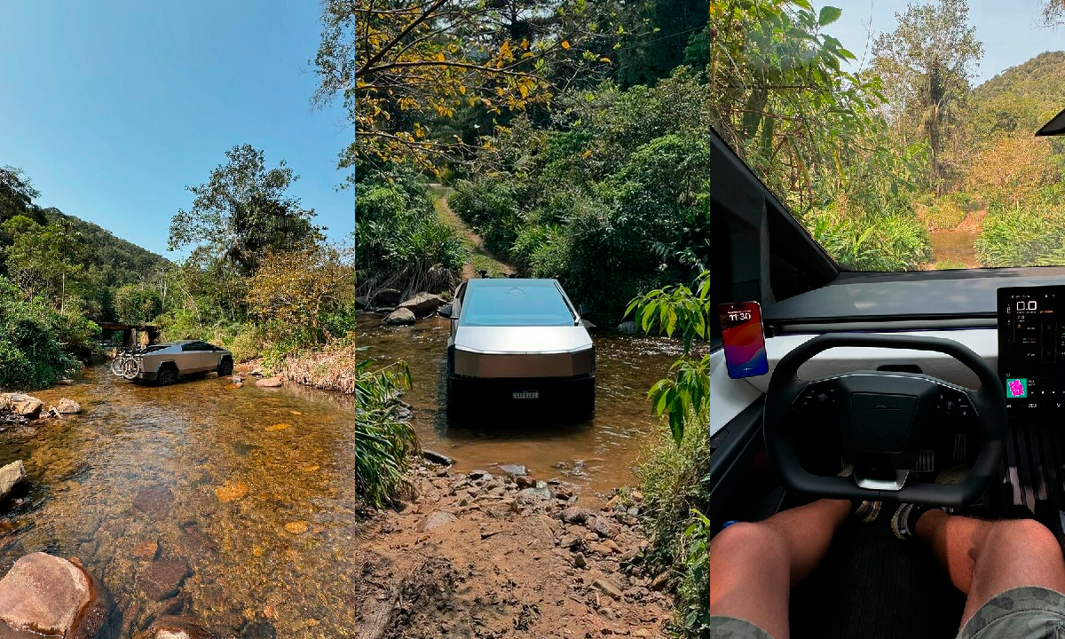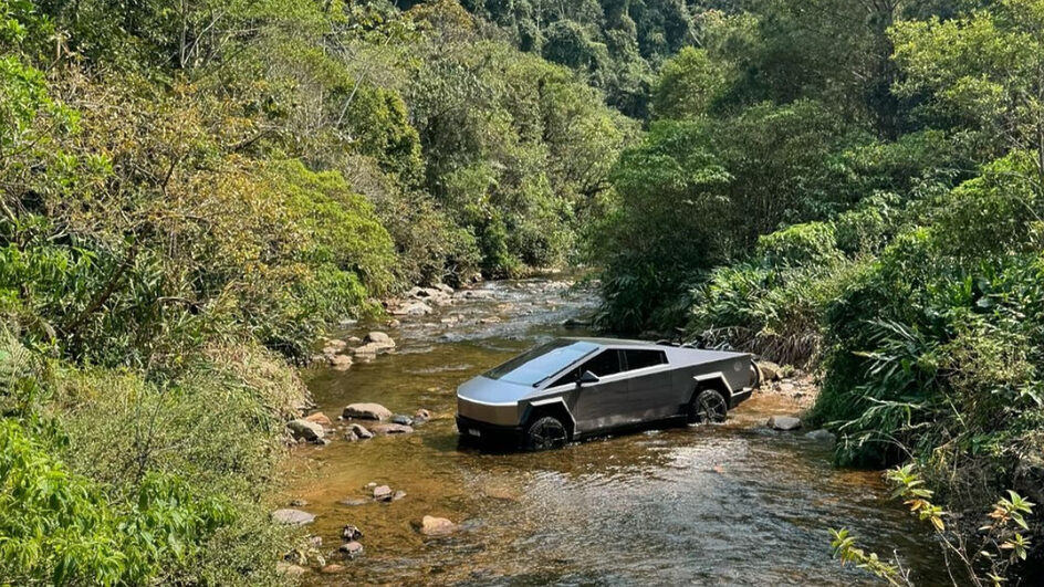 O Tesla Cybertruck, veículo futurista da marca de Elon Musk, foi fotografado circulando por Blumenau, em Santa Catarina. O empresário milionário Daniel Lunelli, herdeiro da bilionária Lunelli, foi visto dirigindo o carro pelo Parque Nacional da Serra do Itajaí, no Faxinal do Bepe, e até atravessou um riacho com o automóvel durante uma trilha.