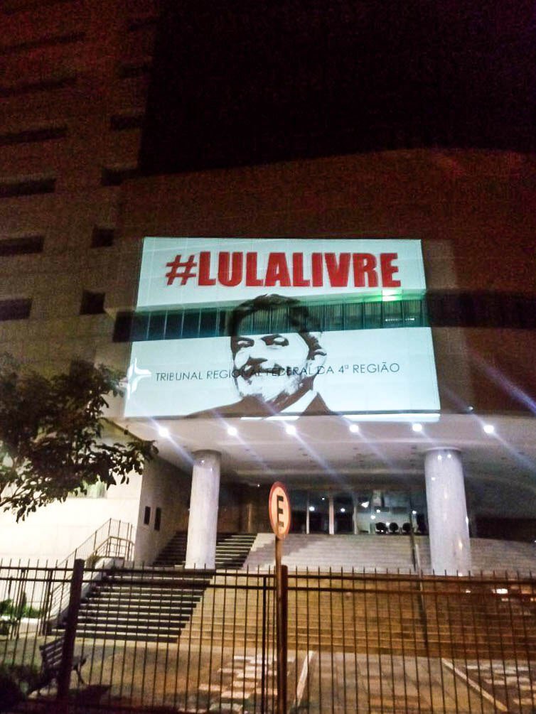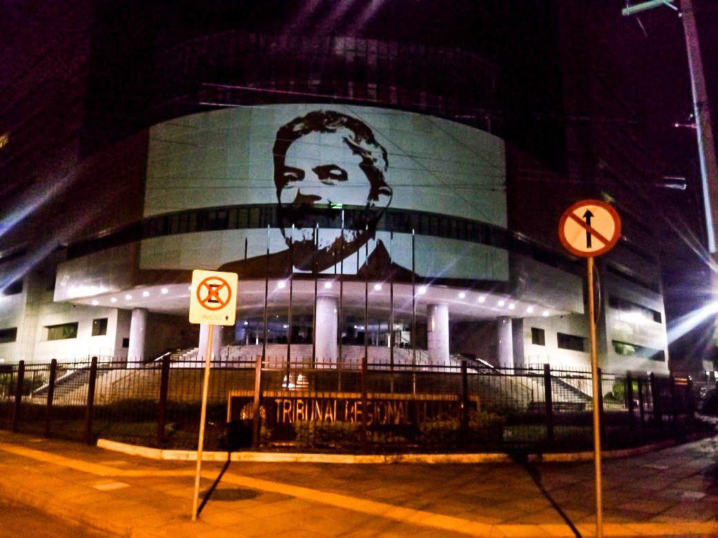 A efígie de Lula foi projetada no prédio do TRF 4 em Porto Alegre.