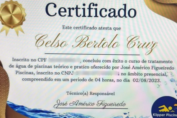 O sócio da C4 Gym, Celso Bertolo Cruz, apresentou à polícia um certificado de tratamento de água com carga horária de apenas 4 horas, realizado em agosto de 2023. A academia é investigada pela morte da aluna Juliana Faustino Bassetto, 27 anos, e pela internação de outras seis pessoas após usarem a piscina no último sábado (7). O responsável direto pela manutenção era o manobrista Severino José da Silva, que recebia orientações por WhatsApp de Celso.