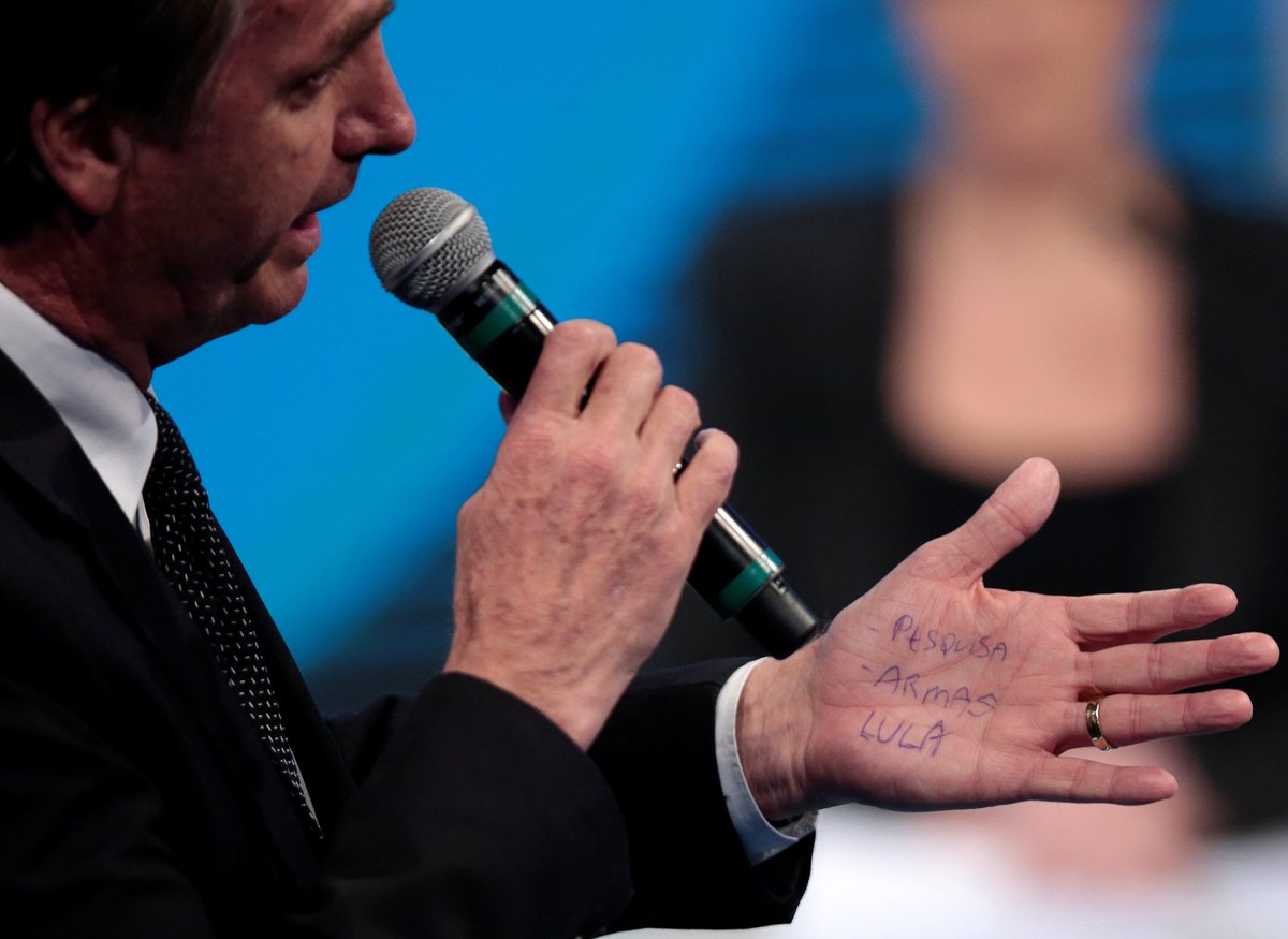 Perguntado sobre a “cola” que carregou na mão para o embate com Marina Silva — em que foi, aliás, enrabado, “Bolsonaro se exaltou com o repórter.