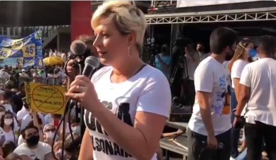 Ex-aliada do mandatário, ela participou da manifestação convocada pelo MBL e pelo Vem Pra Rua na Avenida Paulista.
