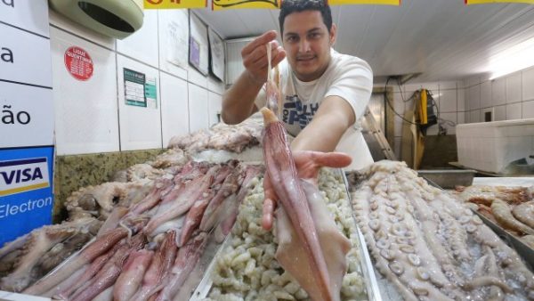 — Demorou, mas a sentença chegou. O Moro está certíssimo e cheio de provas contra esse político — disse o peixeiro enquanto segurava uma lula: — Tem que ir pra panela e tem que ser rápido, para não amargar.