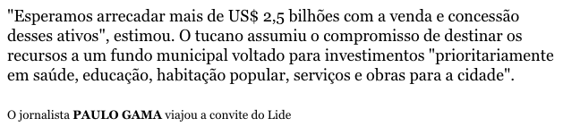 Na matéria “Em premiação em Nova York, Doria é saudado como possível candidato”, está lá avisado que “Paulo Gama viajou a convite do Lide”.