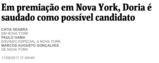 A cobertura laudatória da Folha da turnê de João Doria em NY teve jabá da empresa de lobbies do prefeito de SP e presidenciável do PSDB.