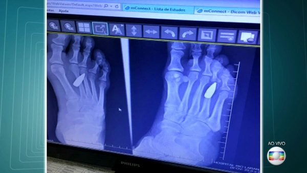 O primeiro atendimento ocorreu na emergência do Hospital Copa D’or. Dispensada após uma sutura simples, procurou outro hospital. o Rio Laranjeiras, onde, a partir de um exame de imagem, descobriu que havia um projétil alojado em seu pé.