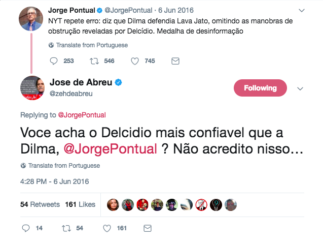 José de Abreu pergunta a Jorge Pontual, da GloboNews, se acha Delcídio mais confiável que Dilma e fica sem resposta