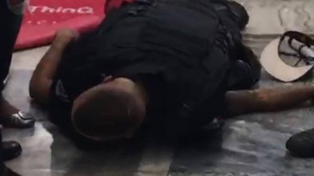 No registro, uma mulher pede para que ele seja solto: “não está armado”. Há outros seguranças no local. Em outro vídeo também é possível ver bombeiros socorrendo o jovem