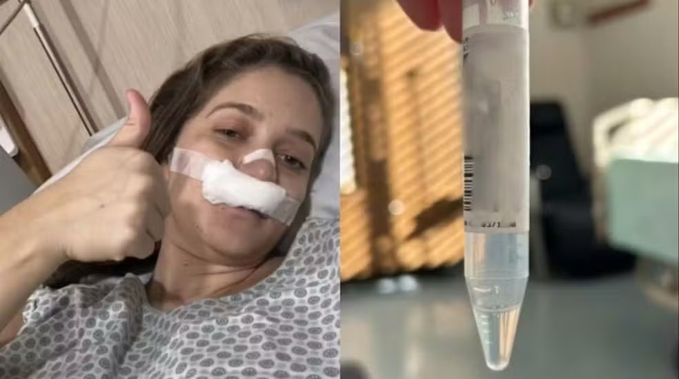 Mais de um ano após o diagnóstico, a jovem notou que o nariz não parava de escorrer. “Achei que fosse gripe”, contou. Exames revelaram que o líquido era o líquor — fluido que protege o cérebro — e que a trombose havia causado uma fístula no crânio.