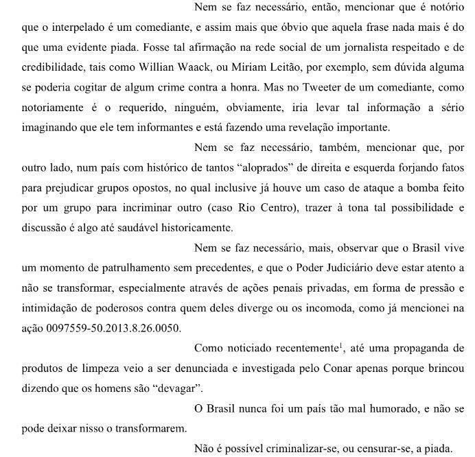 O juiz Carlos Eduardo Lora Franco, da 3ª Vara Criminal Central, rejeitou liminarmente representação judicial com pedido de explicações impetrada pelo Instituto Lula contra Danilo Gentili.