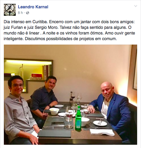 Karnal posta foto de jantar com Moro e provoca debandada em seu Facebook