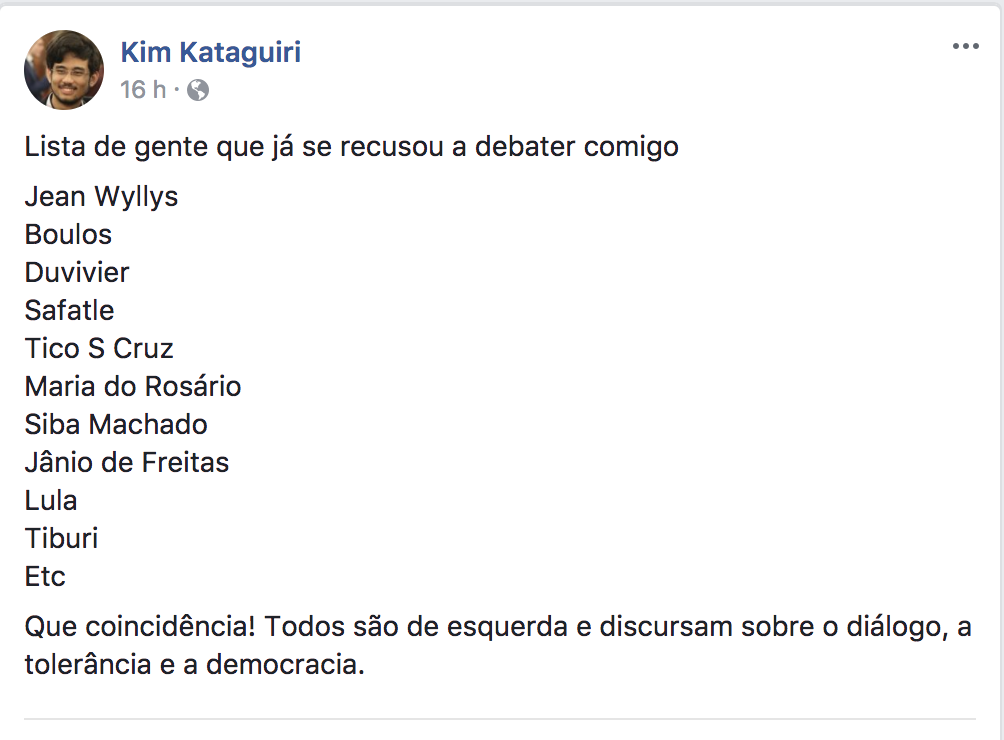 Kim Kataguiri faz lista de pessoas que se negaram a debater com ele e internet não perdoa