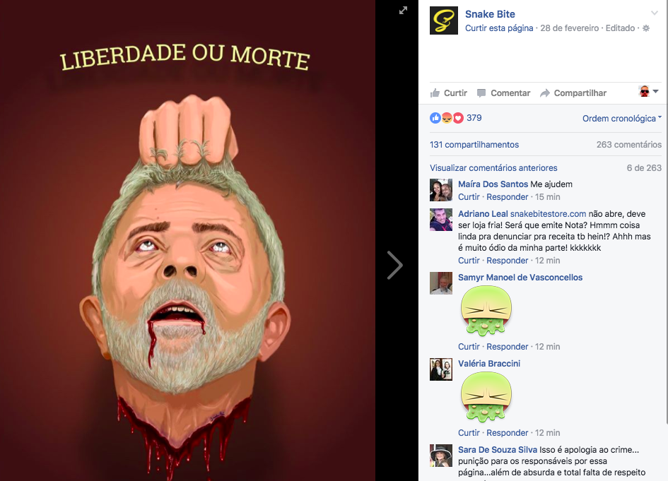 Loja vende no Facebook camisetas com imagem de Lula degolado