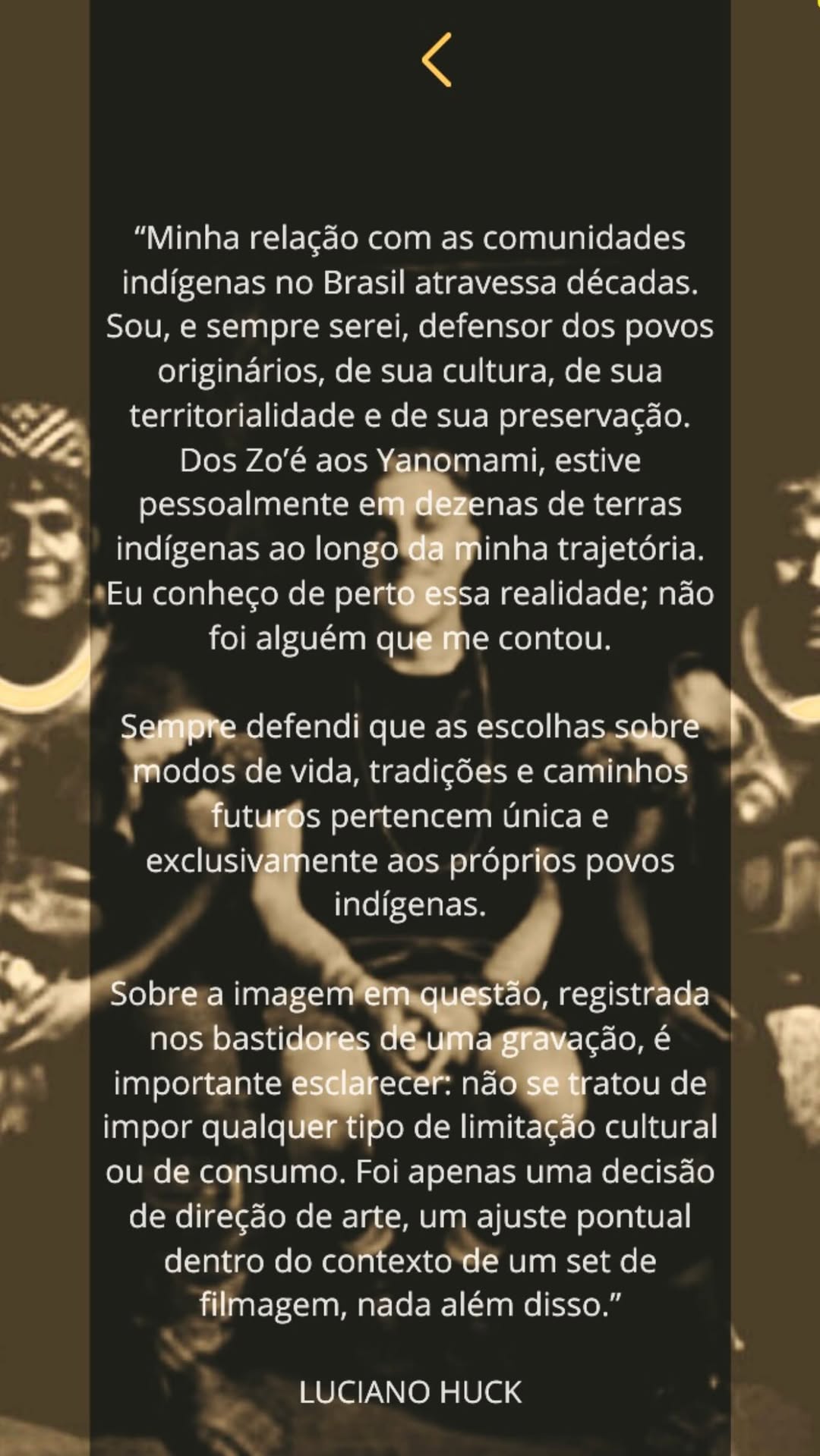 Luciano Huck se manifestou nesta sexta (5) após ser detonado por um pedido feito durante sua visita ao Parque Indígena do Xingu, no Mato Grosso, para uma gravação do “Domingão com Huck”, da TV Globo. Durante a gravação, o apresentador pediu que os presentes evitassem mostrar celulares e roupas “comuns” para uma foto.