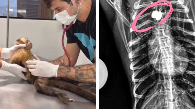 No local, a equipe veterinária realizou exames de imagem que mostraram a bala alojada na coluna. A macaquinha, batizada de Maria, aguarda cirurgia para retirada do projétil e permanece sob cuidados intensivos, recebendo aquecimento, medicação e alimentação assistida.