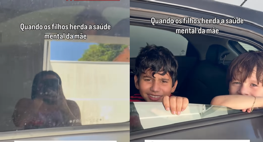 Uma mãe identificada como Larissa compartilhou um vídeo nas redes sociais e viralizou após mostrar que havia esquecido a chave dentro do carro — junto com os três filhos.