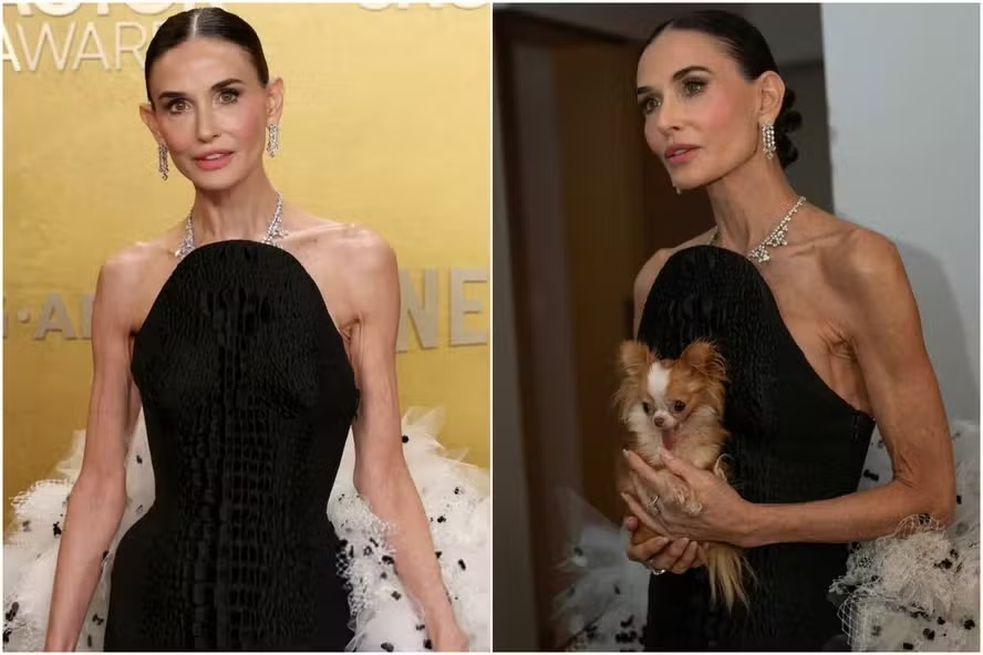 A aparência da atriz Demi Moore, de 63 anos, passou a gerar comentários entre seguidores após fotos recentes publicadas em seu perfil no Instagram. As imagens mostram o visual adotado pela atriz durante a premiação do Screen Actors Guild Awards, realizada em Los Angeles.