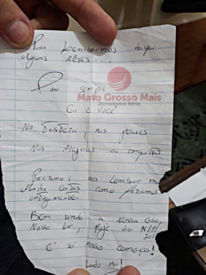 O site do Mato Grosso Mais teve acesso a uma carta deixada por Maíra Panas ao namorado, Rodrigo Santos.