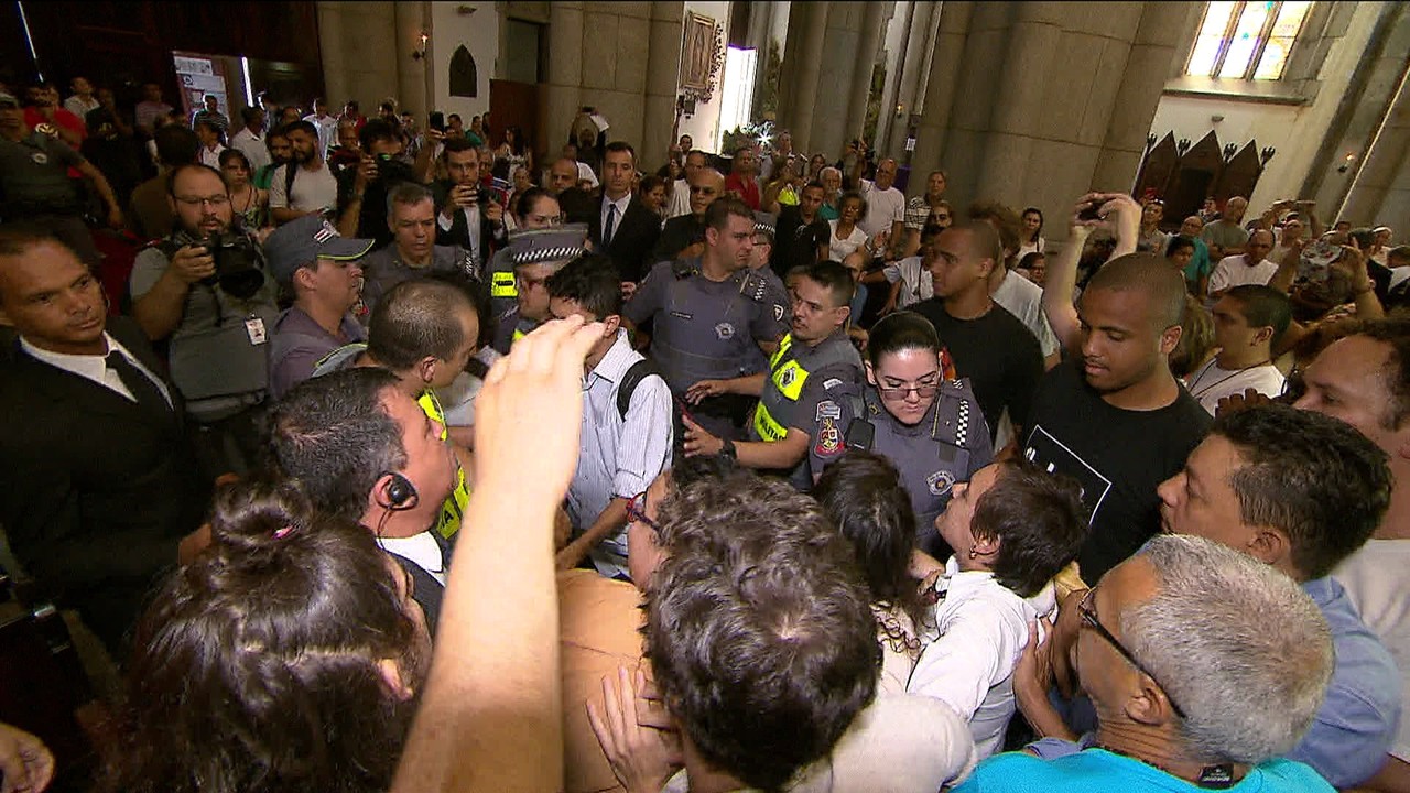 Após intervenção da Polícia Militar, o grupo se retirou, e o arcebispo da cidade, Dom Odilo Scherer, continuou a celebração.