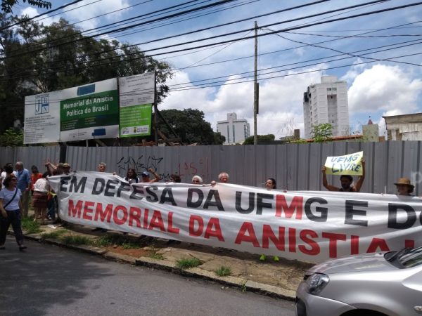 Manifestantes realizam ato em defesa da UFMG e do Memorial da Anistia