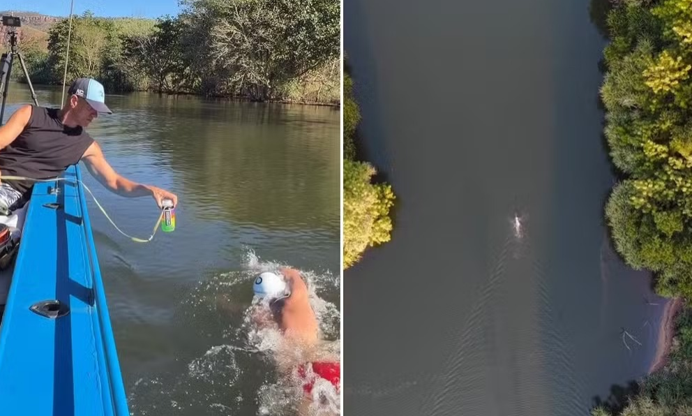 Maratonista nada 55 km em rio com 5.500 crocodilos, bate recorde em 11h e ironiza: “Não vi nenhum”