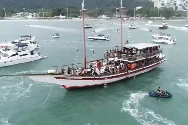 Marinha interrompe festa clandestina com mais de 300 pessoas no mar do Guarujá