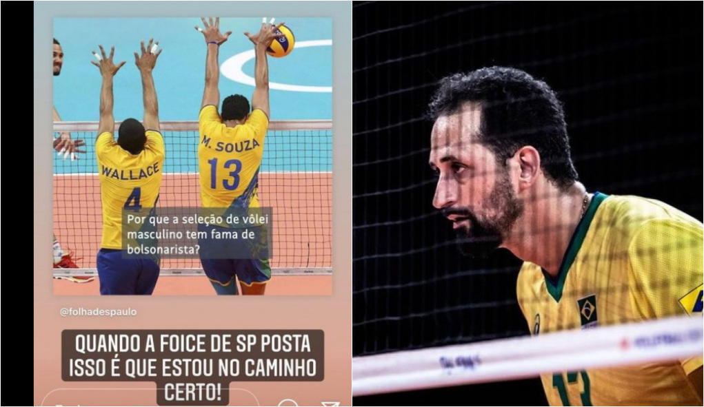O atleta compartilhou a matéria intitulada “Por que a seleção de vôlei masculino tem fama de bolsonarista?” e respondeu o seguinte: “Quando a foice de SP posta isso é que estou no caminho certo!”.