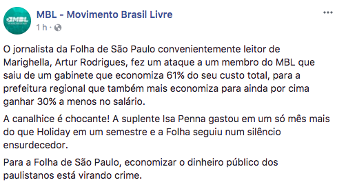 Depois de censurar obras de arte, o MBL quer barrar as matérias que não elogiam a milícia.