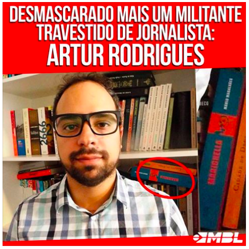 A prova do crime do jornalista Artur Rodrigues, segundo o grupo, é ter na estante a biografia de Marighella escrita por Mário Magalhães. O próximo passo é queimar os livros.