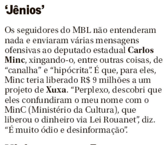 MBL ataca o deputado do RJ Carlos Minc por confundi-lo com a sigla do ministério da Cultura (MinC)