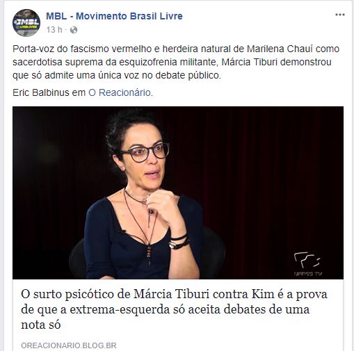 E, é claro, eles chamam Márcia de “herdeira natural de Marilena Chauí”. Pena que os meninos do MBL não estudaram tanto quanto Marilena ou Márcia Tiburi. O resultado está ai.