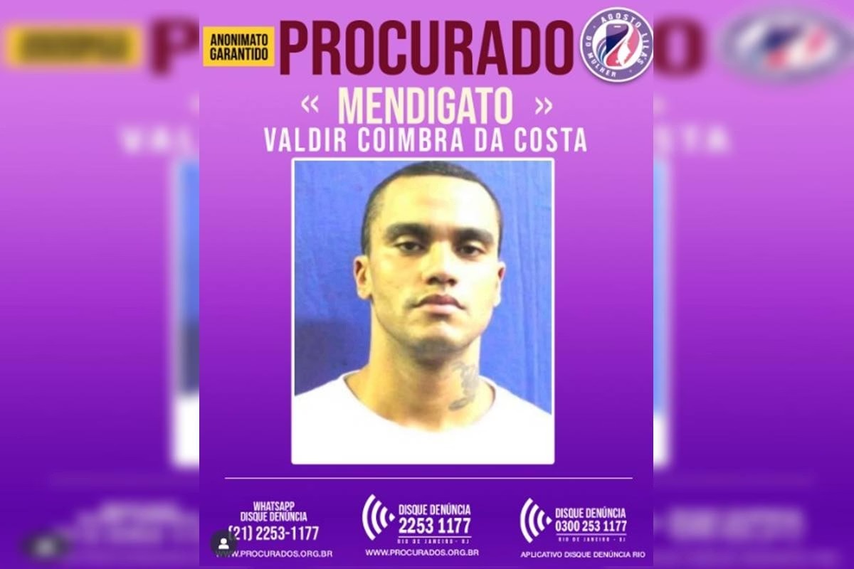 O Disque Denúncia do Rio procura Valdir Coimbra da Costa, 40 anos, o “Mendigato”, suspeito de homicídio após o sumiço da ex-companheira Cristiane dos Santos, 44. Segundo o canal, ele é o principal investigado e está foragido desde fevereiro; familiares relataram ciúmes e episódios de violência no relacionamento.