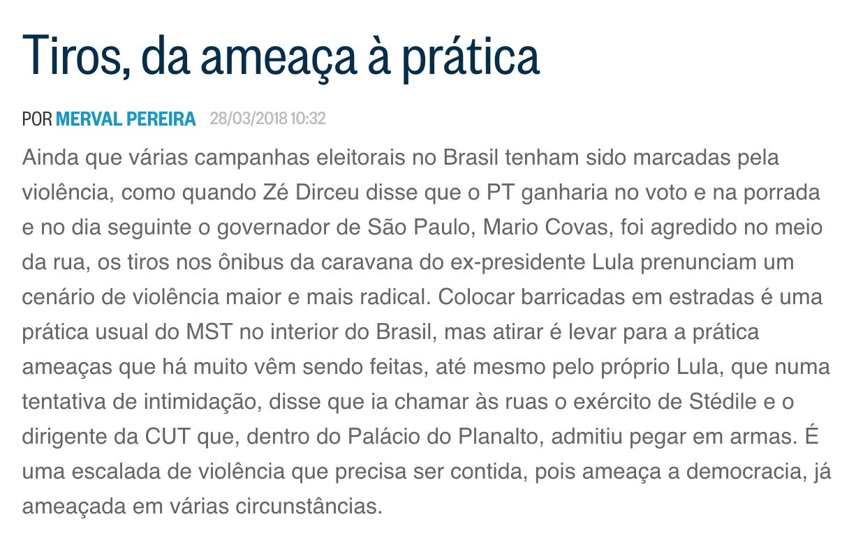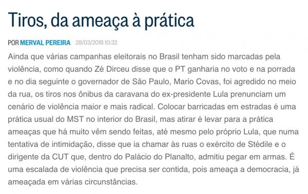 Merval justifica atentado a Lula com “campanhas marcadas pela violência” do PT