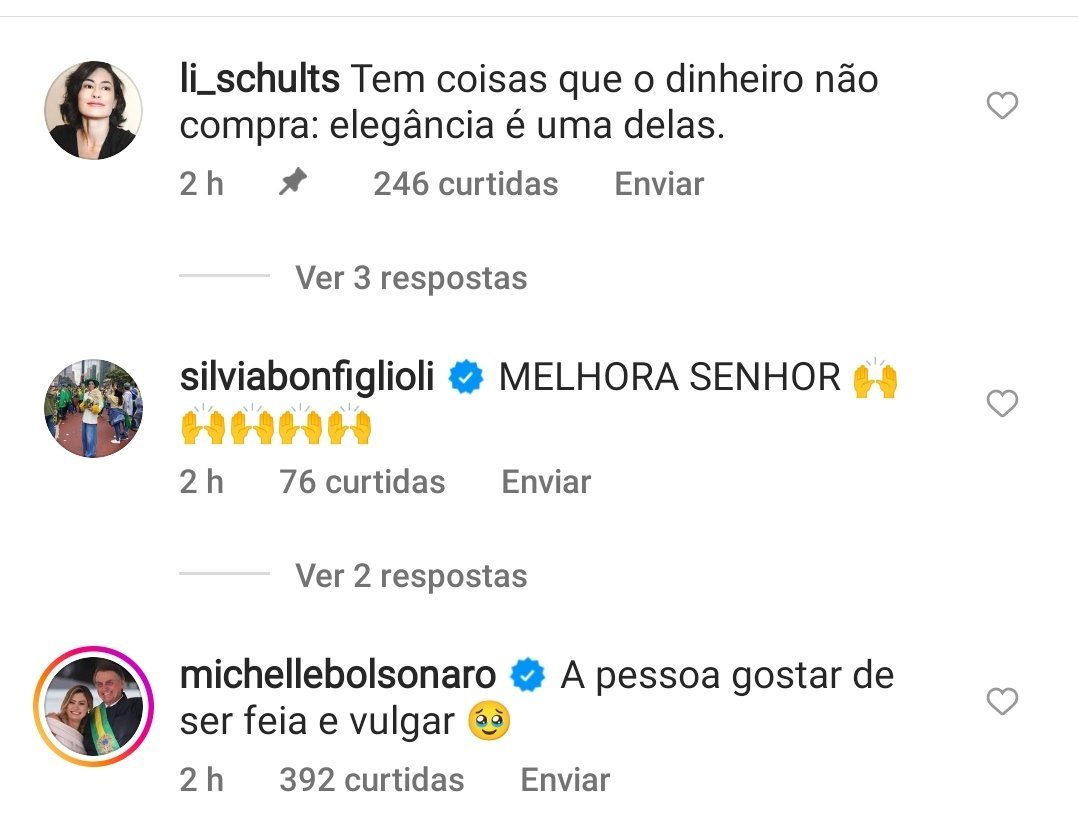 “A pessoa gostar de ser feia e vulgar”, escreveu a primeira-dama no perfil de um estilista. Rapidamente, o comentário de Michelle viralizou e recebeu críticas de internautas.