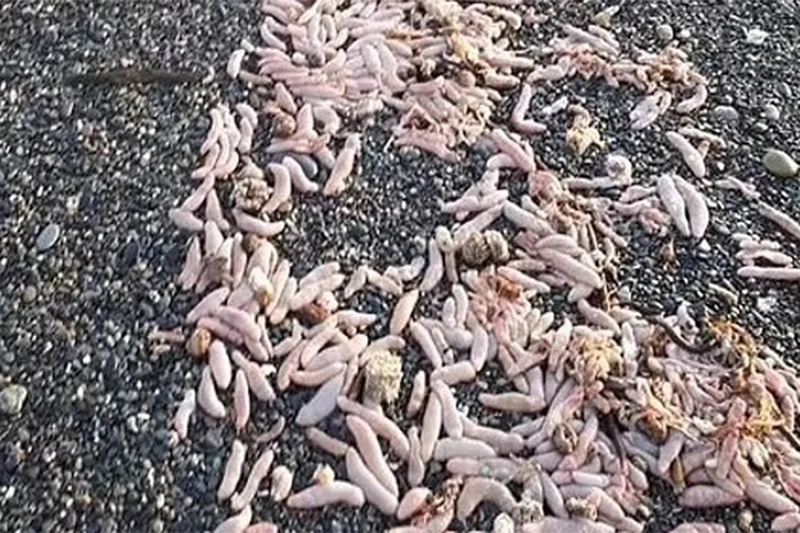 Milhares de ‘peixes-pênis’ invadem praia na Argentina