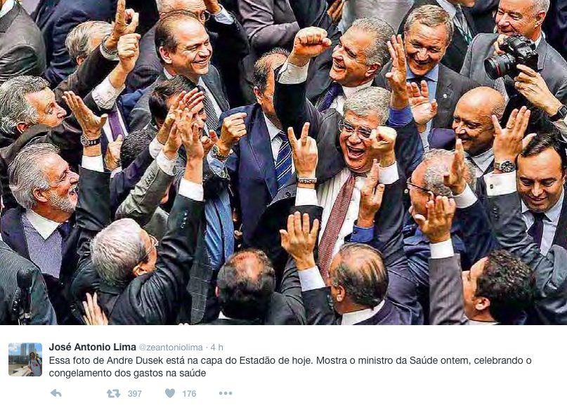 Ministro da Saúde comemora com deputados o congelamento de gastos em sua pasta