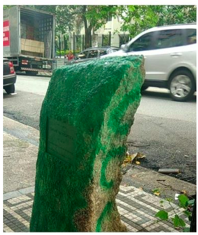 A obra amanheceu pichada de verde com a sigla “CCC” pichada, em referência ao Comando de Caça aos Comunistas.