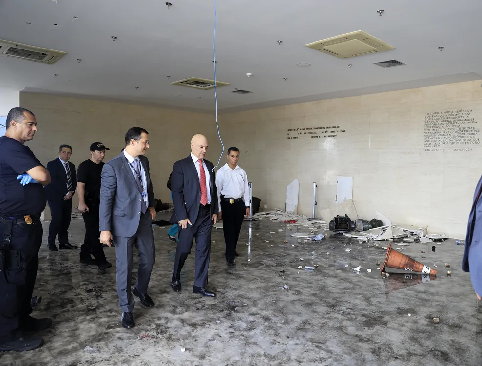 Moraes avalia estragos causados por bolsonaristas no STF durante ato terrorista