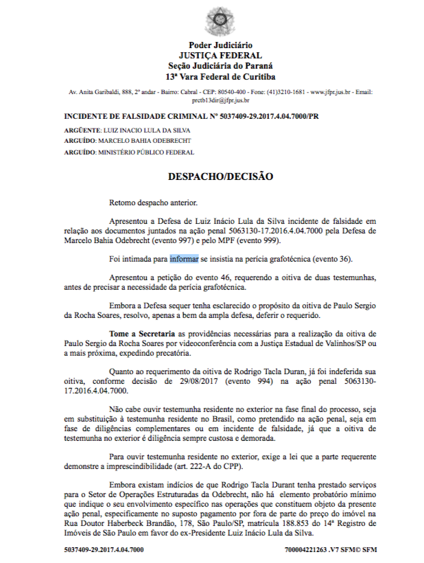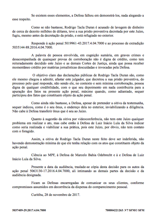 Moro nega novamente a oitiva de Tacla Duran à defesa de Lula