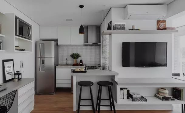 Designers destacam que peças como bancada dobrável, mesa com gavetas e sofá baú ampliam a funcionalidade do espaço.
