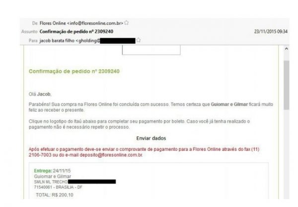 Autorizados pelo juiz Marcelo Bretas a vasculhar a caixa de email de Jacob Barata Filho, os procuradores encontraram a confirmação de um pedido de entrega de flores para Gilmar e a mulher, Guiomar.
