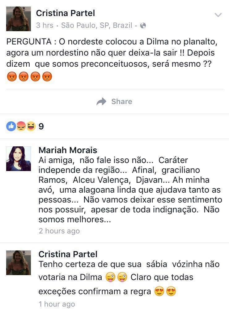 Em sua conta no Twitter, Cristina Partel, mulher do novo presidente da Abril Walter Longo, mostrou sua opinião sobre os nordestinos.