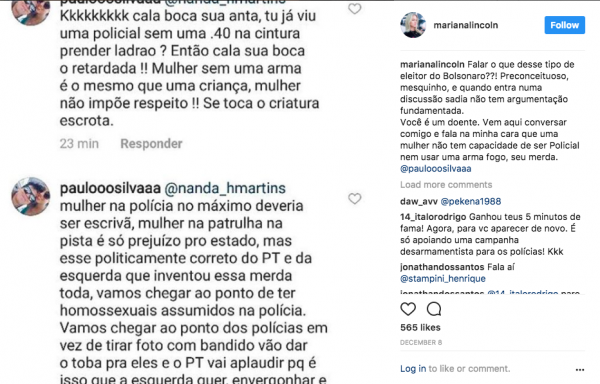 A policial civil Mariana Lincoln teve que lidar com as agressões dos seguidores doentes de Bolsonaro depois de um post em que afirmou que o guru da extrema direita “tem a oferecer mais violência, medo e ódio”.